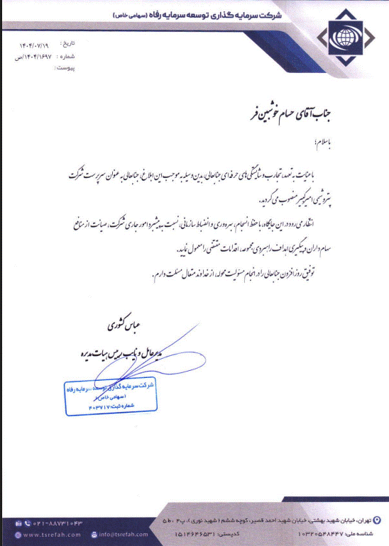 حسام خوشبینفر مدیرعامل پتروشیمی مروارید به پتروشیمی امیرکبیر رفت!