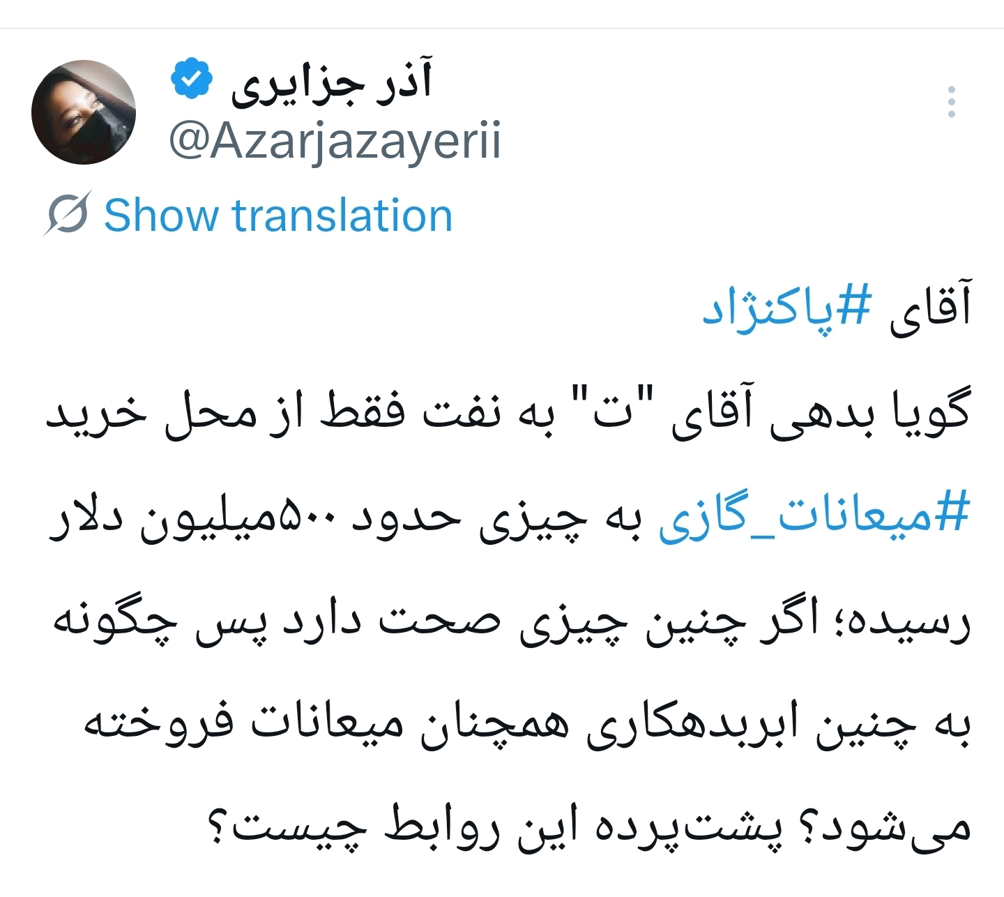 گویا بدهی آقای "ت" به نفت فقط از محل خرید میعانات گازی به چیزی حدود ۵۰۰میلیون دلار رسیده؛اگر چنین چیزی صحت دارد پس چگونه به چنین ابربدهکاری همچنان میعانات فروخته میشود؟