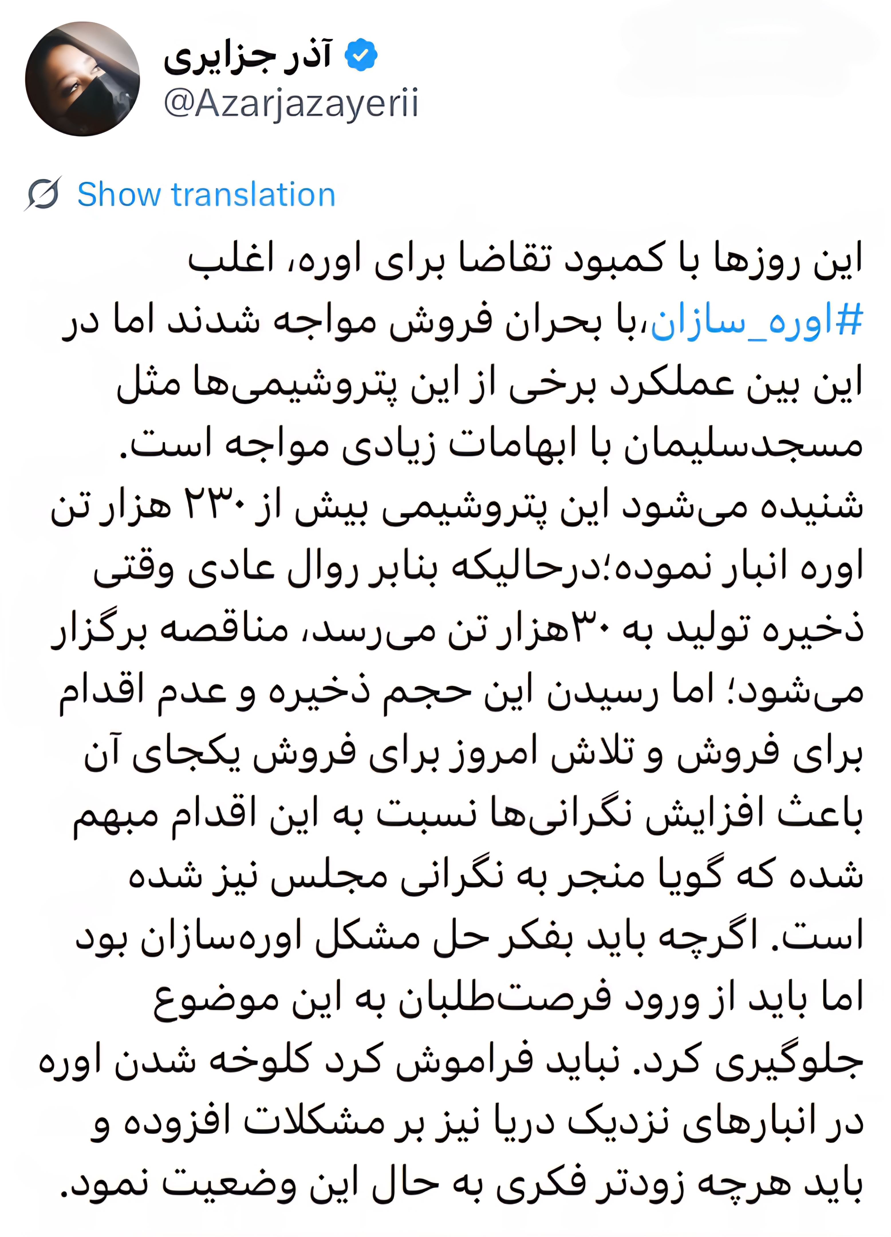 نفتی ها /این روزها با کمبود تقاضا برای اوره، اغلب اوره سازان،با بحران فروش مواجه شدند اما در این بین عملکرد برخی از این پتروشیمی‌ها مثل مسجدسلیمان با ابهامات زیادی مواجه است.