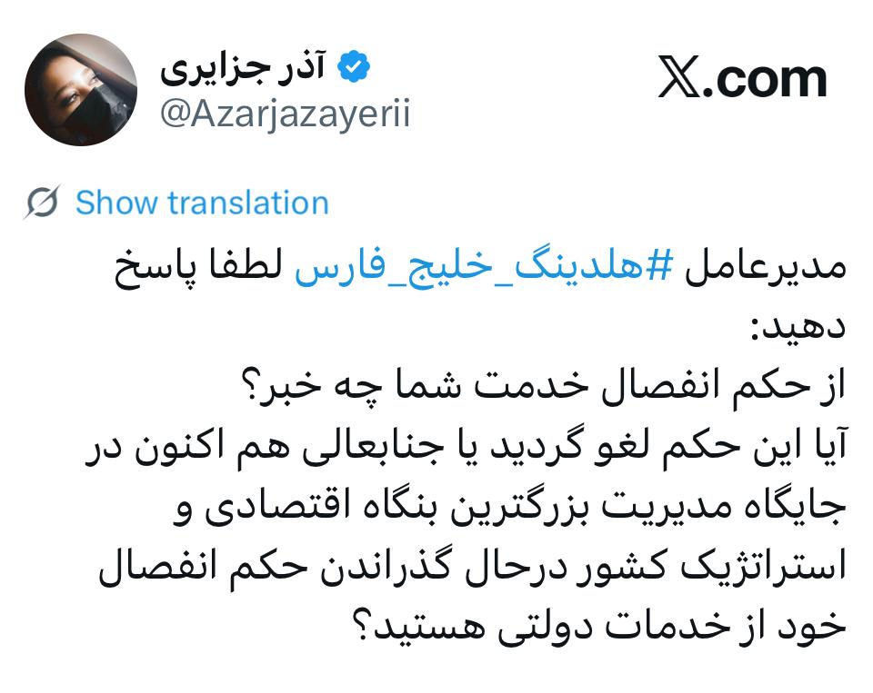 نفتی ها /مدیرعامل هلدینگ خلیج فارس لطفا پاسخ دهید: