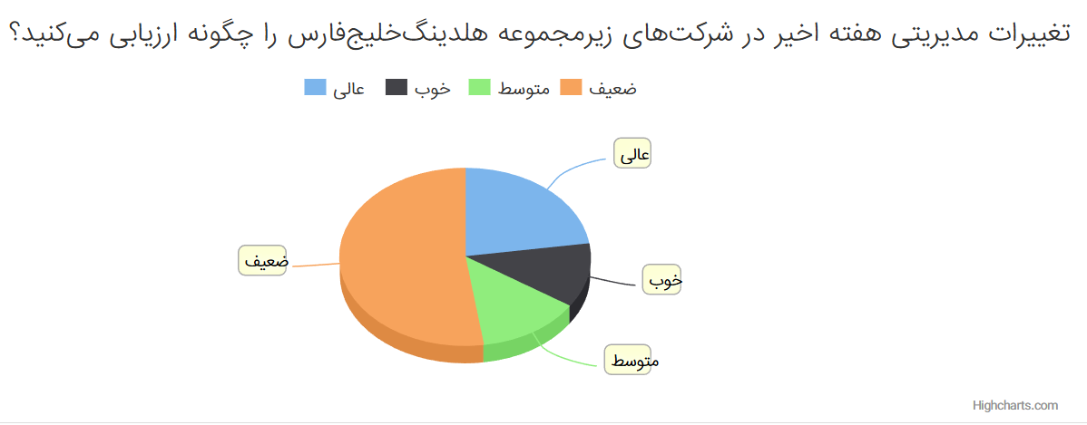 نفتی ها /پایگاه تحلیلی خبری "نفتیها" در نظرسنجی این دوره خود تصمیم به ارزیابی نگاه مخاطبان و کارشناسان به تغییرات مدیریتی اخیر در شرکتهای زیرمجموعه هلدینگ خلیجفارس گرفت؛ این تغییرات که از سوی بخشی از فعالان صنعت پتروشیمی بهعنوان تلاشی برای نوسازی مدیریتی، افزایش چابکی سازمانی و تقویت فرآیندهای تصمیمگیری تعبیر میشود، همزمان نگرانیهایی درباره احتمال بیثباتی و کند شدن مسیر اجرای پروژهها را نیز در میان برخی تحلیلگران ایجاد کرده بود.