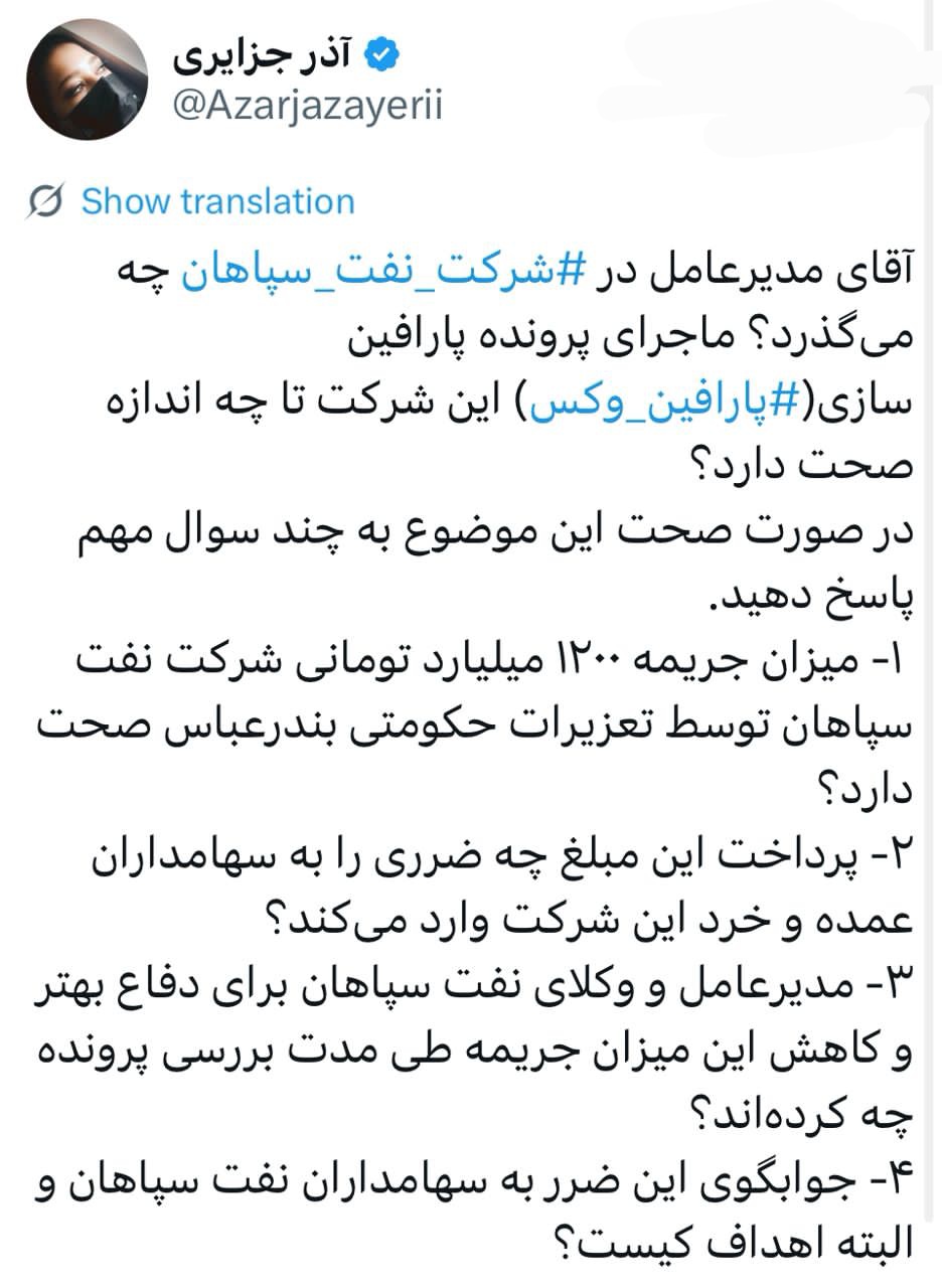 نفتی ها /آقای مدیرعامل در شرکت نفت سپاهان چه میگذرد؟ ماجرای پرونده پارافین سازی(پارافین وکس) این شرکت تا چه اندازه صحت دارد؟