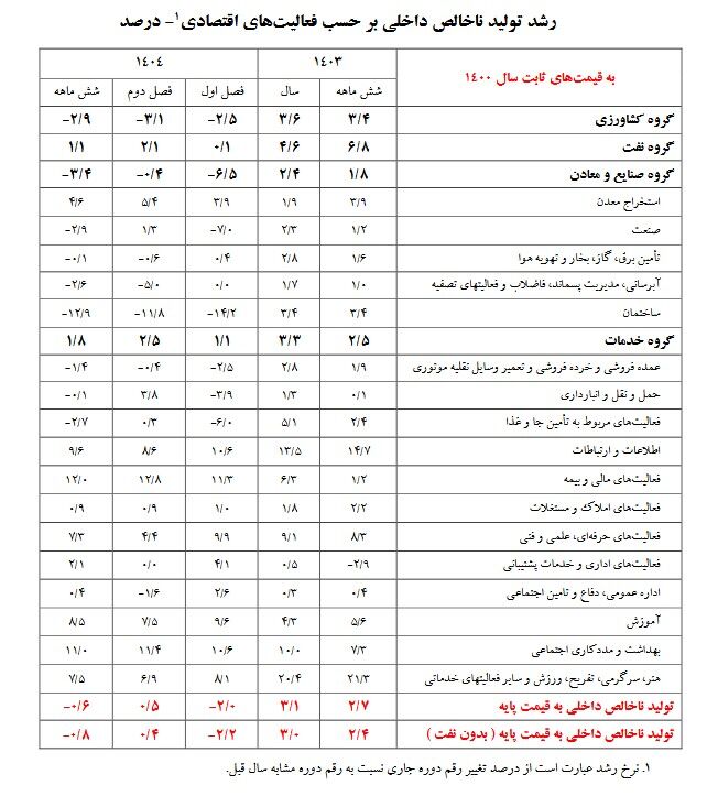 در مقابل، افت محسوس در بخشهای مولد غیرنفتی، بهویژه صنعت و ساختمان، نشان میدهد که اقتصاد ایران همچنان با چالش سرمایهگذاری و کاهش تقاضای مؤثر مواجه است. با این حال، همزمانی رشد نفت با رشد مثبت بخش خدمات، هرچند محدود، از وجود ظرفیتهای فعال در اقتصاد حکایت دارد؛ ظرفیتی که در صورت هدایت صحیح منابع نفتی، میتواند به تدریج به سمت تقویت تولید داخلی سوق داده شود.